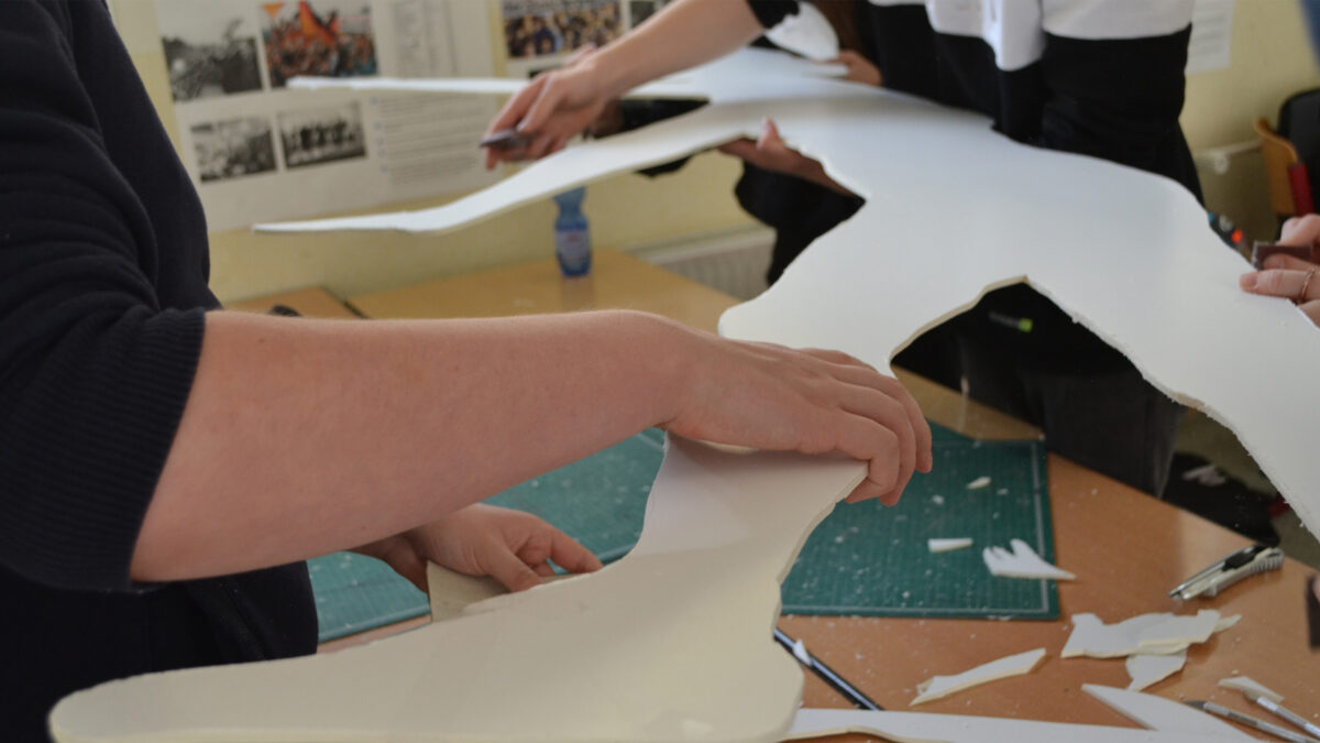 „Ich wußte gar nicht, daß es in meiner Gemeinde eine Synagoge gab!“ – so und ähnliche Aussagen kamen. Also lagen wir mit unseren Schulprojekten genau richtig. Die Lehrer*innen der drei mitmachenden Schulen haben engagiert die Türen geöffnet, organisiert und Unglaubliches möglich gemacht; sie wußten wie gut es sein wird, durch andere Vermittler und in anderen Kontexten neue oder bekannte Themen anzugehen: so konnten die Lehrer*innen mit den Künstler- und Designer*innen der JugendKunstschule gemeinsam maßgeschneiderte Konzepte für jede Schule entwickeln.