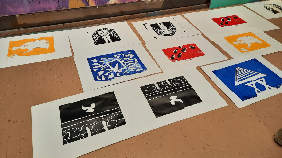 Die Projekttage der 10. Klassenstufe waren flankiert durch den Workshop des jüdischen Musikers Yoed Sorek. Die musikalische Arbeit wurde in einem weiteren Workshop fortgesetzt. Dazu kam ein Workshop zur fotografische Spurensuche in der Stadt – mit einer Einführung in dokumentarischer Fotografie durch den Fotografen Dieter Horn. Mit dem Schauspieler Roman Kimmich erarbeiteten die Schüler*innen kurze Szenen zu Fragmenten, Eintragungen und historischen Fotos. In der Kunstschule in Schweina fertigten die Teilnehmer*innen unter Leitung der Künstler Daniel Storch und der Künstlerin Ulrike Kraus großformatige Siebdrucke und Stencil Art. Sie wirken als große Kunstplakate, mal still und leise und mal warnend, aufschreiend.